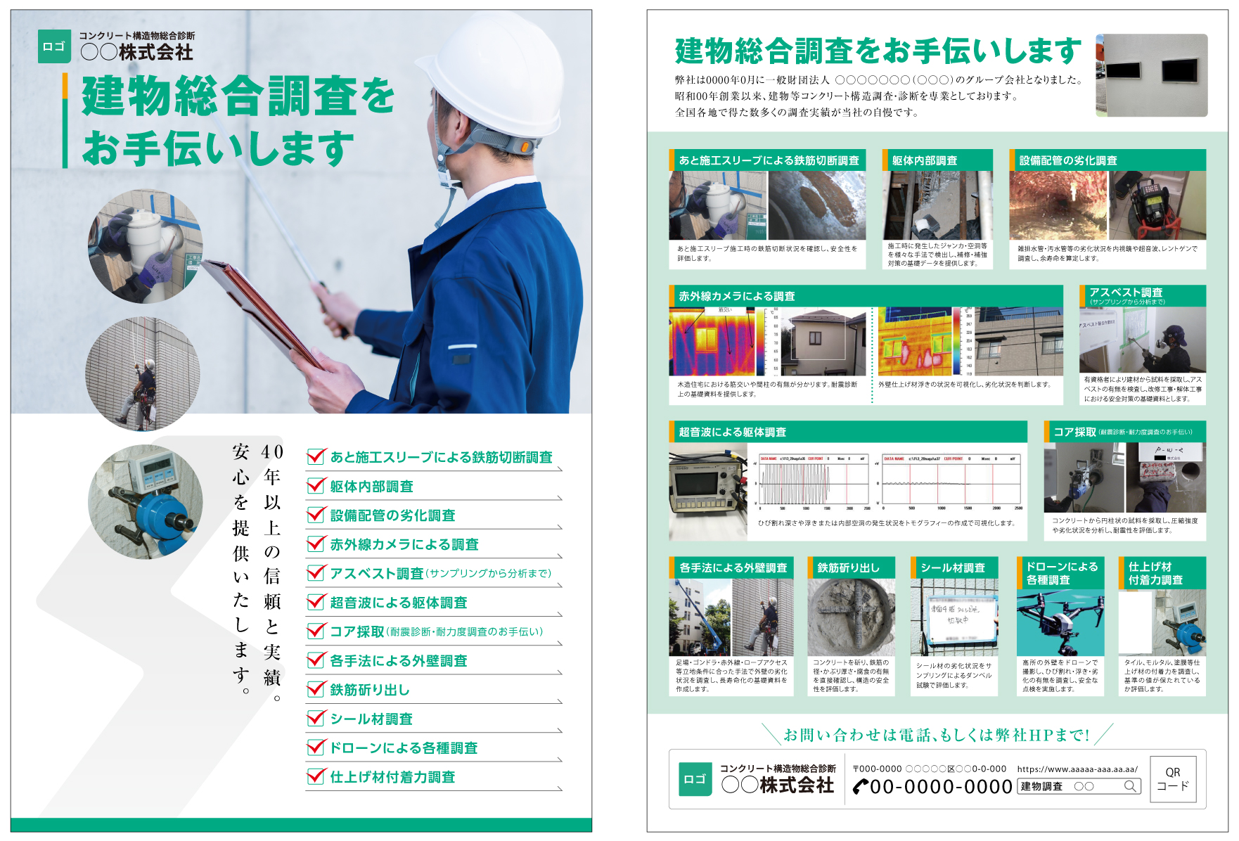屋根工事・太陽光設備会社案内(巻き三つ折り)